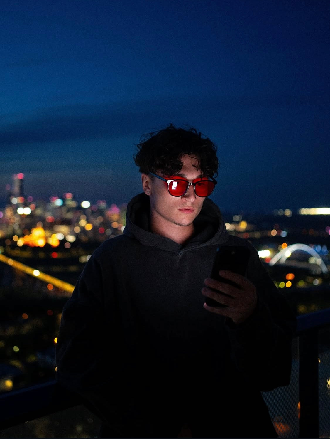 See sharper. Sleep better. Feel unstoppable.OurRed Lens Blue Light Glassescut harsh blue light, ease eye strain, and keep you focused longer — all while looking effortlessly sleek. Built to last. Made to perform.